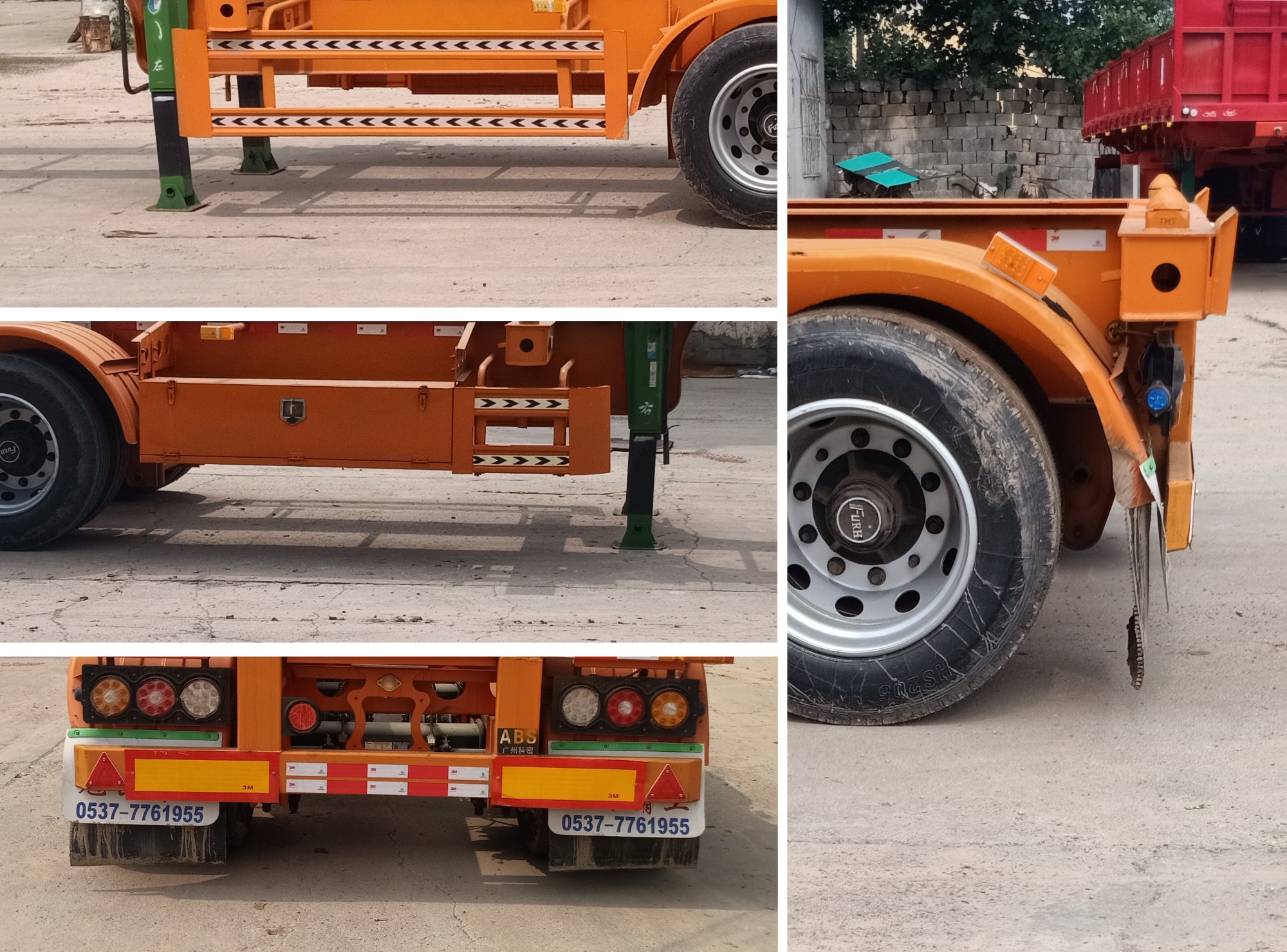 | 该车为大鹅颈结构,承载面的车架上平面在空载时离地高度1350mm,1300mm,1250mm,1200mm,1150mm,1050mm,970mm,950mm,用于运输一个20英尺集装箱,选装前部样式,选装大梁异形孔结构,一,ABS:型号:CM2XL-4S/2M;生产厂家:广州瑞立科密汽车电子股份有限公司.二,侧、后防护材料均用Q235B,连接方式:侧下部防护装置焊接/后下部防护装置用焊接连接,后防离地高度为480mm,后防护截面尺寸为140mm×55mm. | |||