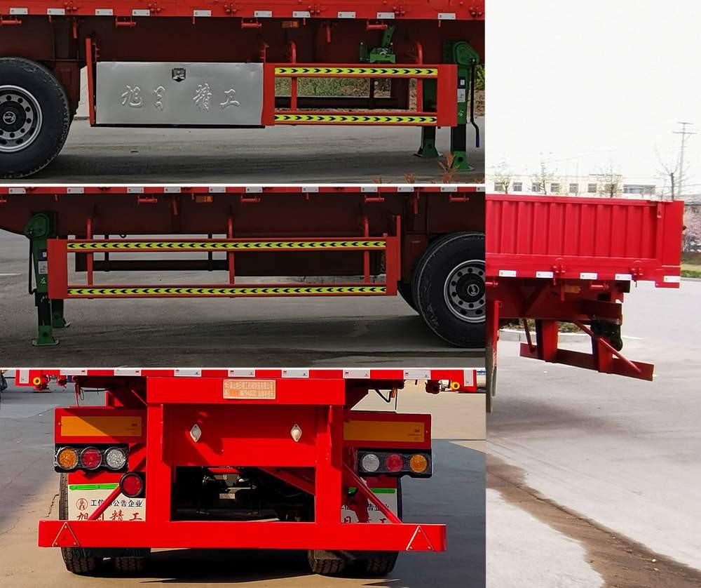 | 该车为侧卸,选装前档样式,选装侧面、后部栏板样式及开启形式.车长/牵引销至车辆最前端的距离/轴距/后悬尺寸对应关系:13000/1200/6880+1310+1310/2300,13000/1300/6780+1310+1310/2300,13000/1400/6680+1310+1310/2300,12500/1300/6480+1310+1310/2100,12000/1200/6280+1310+1310/1900.ABS:型号:CM2XL-4S/2M;生产厂家:广州瑞立科密汽车电子股份有限公司.防护:防护材料均采用Q235B,与车辆连接方式为焊接.后防:离地高度为470mm,断面为150mm×55mm. | |||